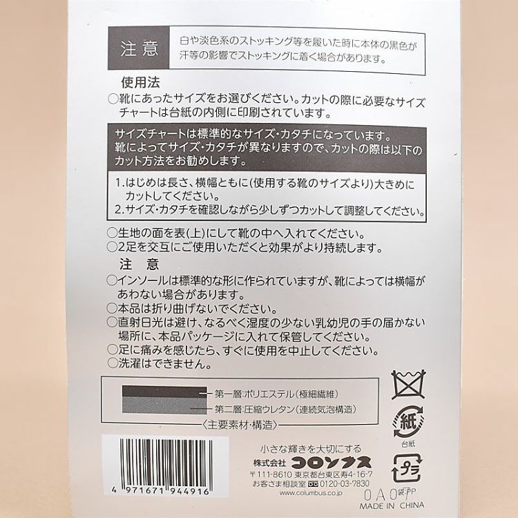 ※インソールは標準的な形に作られていますが、靴によっては横幅が合わない場合があります。