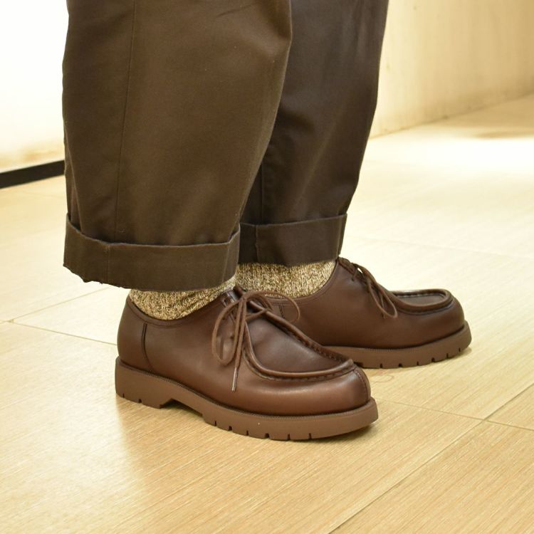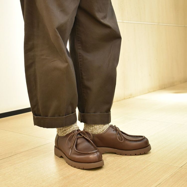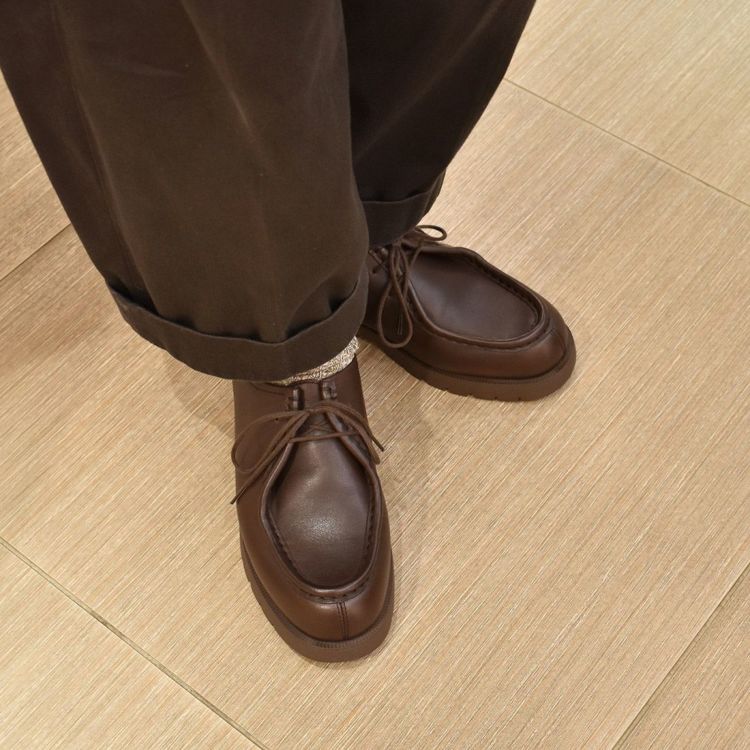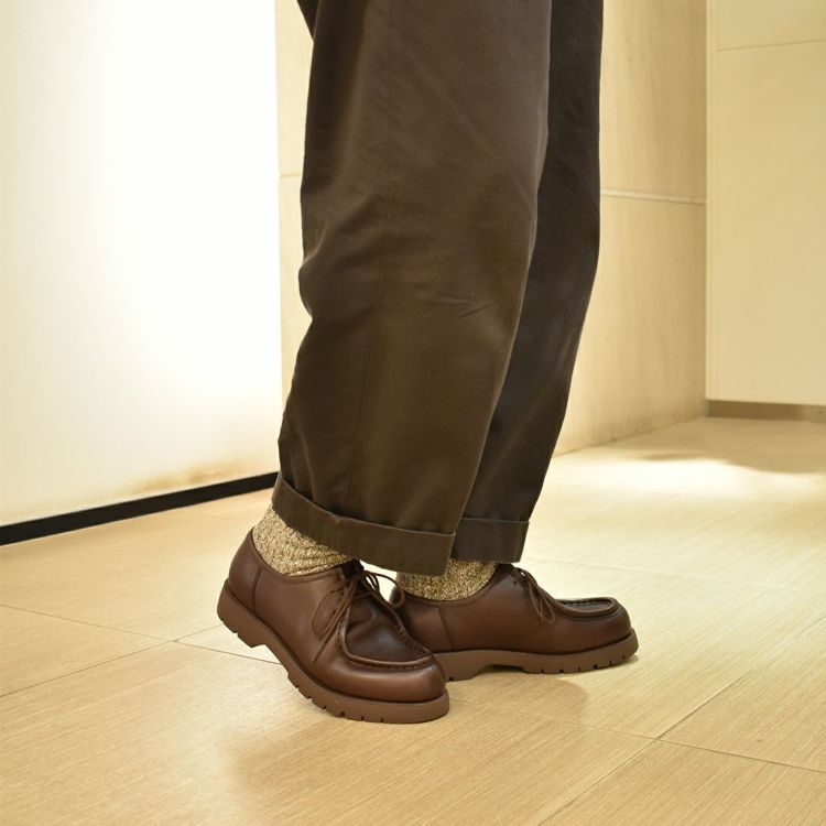 WASHでは毎シーズン人気のコラボモデル。アルプス山脈の一部、チロル地方の牧童が愛用していたブーツが原形のチロリアンシューズ。程よいボリュームソールがトレンド感をアップ。見た目の割に重くないのもポイント。チノやデニムなどカジュアルスタイルからスラックスのようなきれいめスタイルまで幅広いシーンで活躍できる1足です。