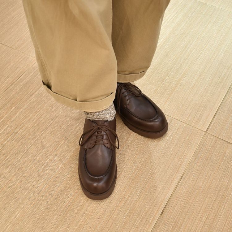 足元にボリュームを持たせたトレンドスタイルを楽しみつつ、ドレスシューズのきちんと感も◎。見た目の割に重くないのもポイント。チノやデニムなどカジュアルスタイルからスラックスのようなきれいめスタイルまで幅広いシーンで活躍できる1足です。