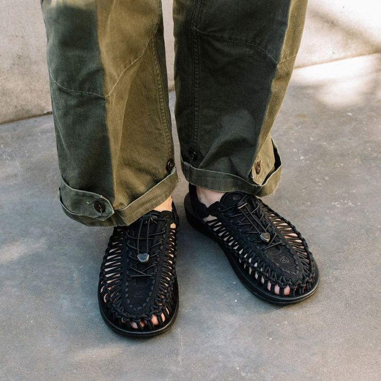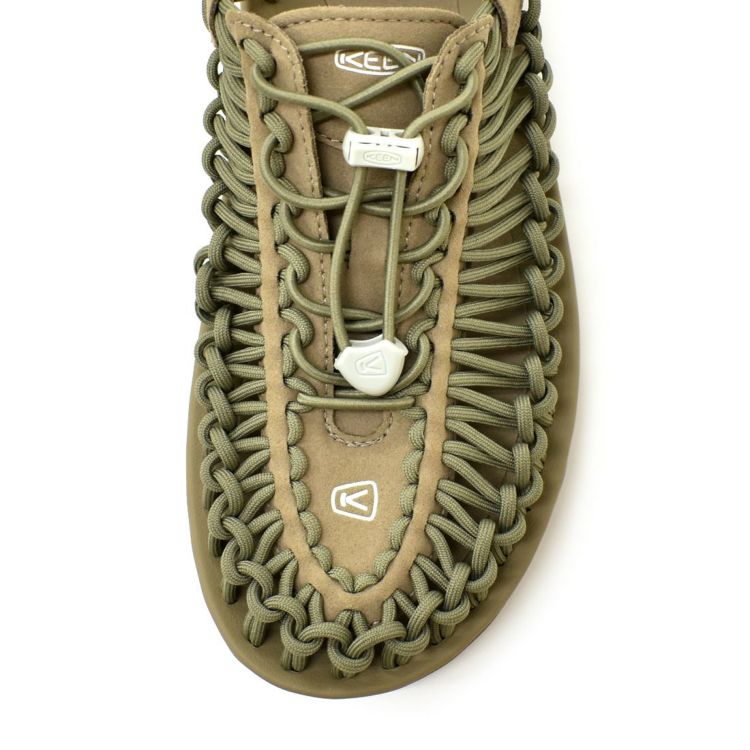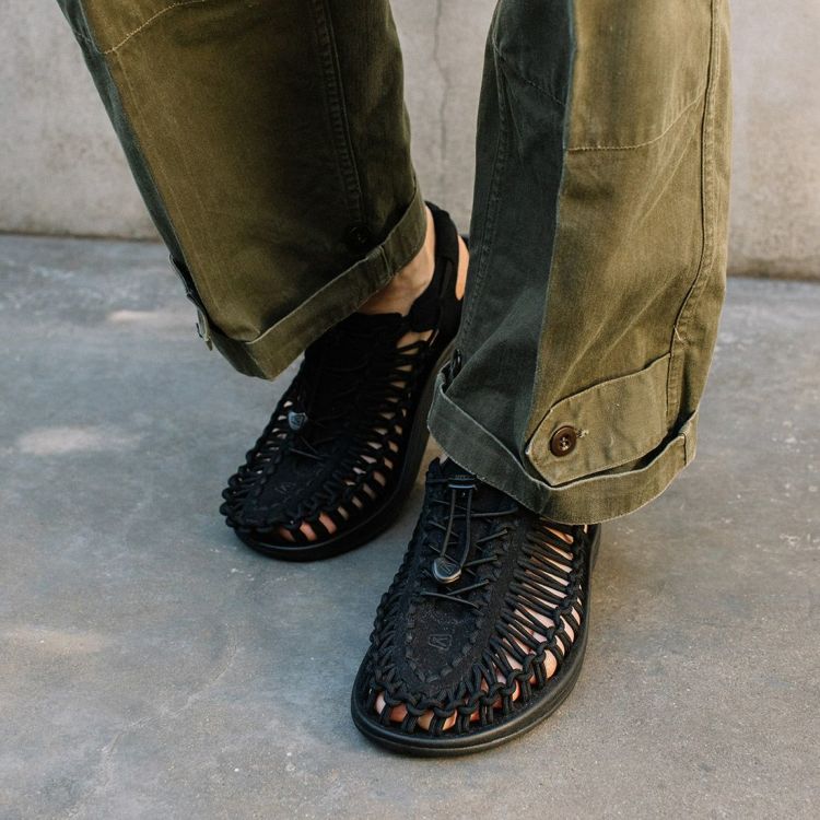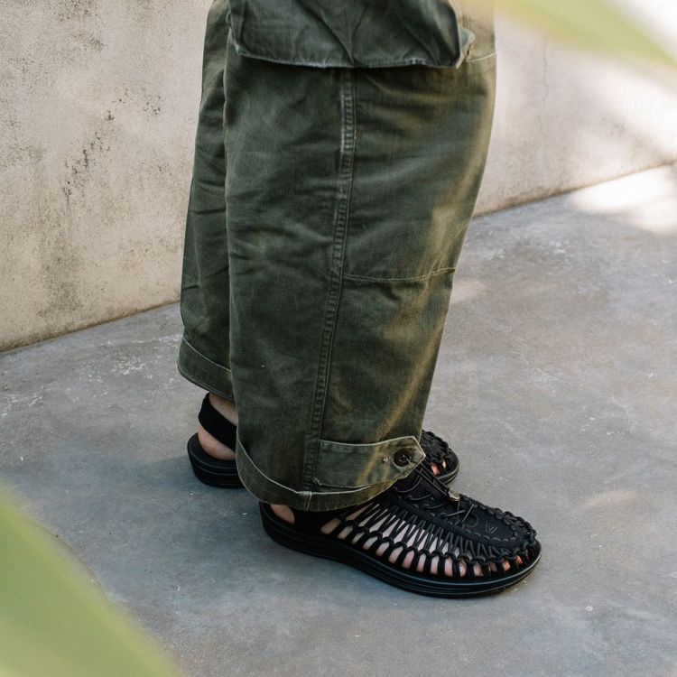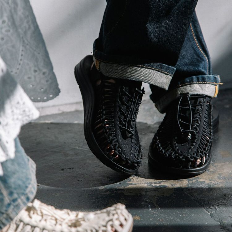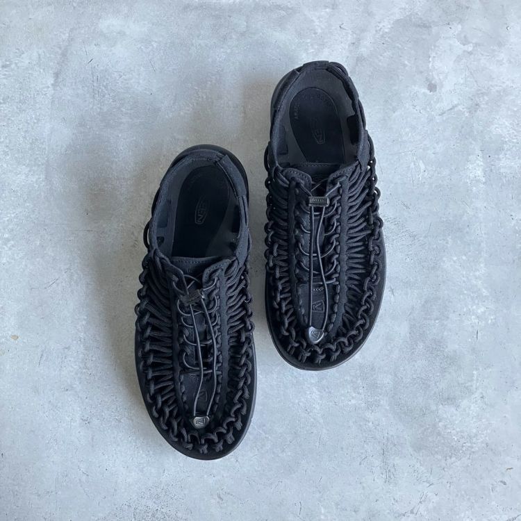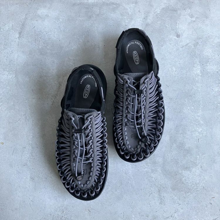 KEENでも人気のシリーズ、UNEEK(ユニーク)。2本のコードと1枚のソールから作られたスニーカー。サンダルとシューズが組み合わされたデザインは、構想から3年半の月日を経て完成したと言われています。足裏の形に合わせて立体成型されたフットベッドはアウトドアシーンも安心。ソックスと合わせれば真冬以外の3シーズン対応ができるのも嬉しいポイント。