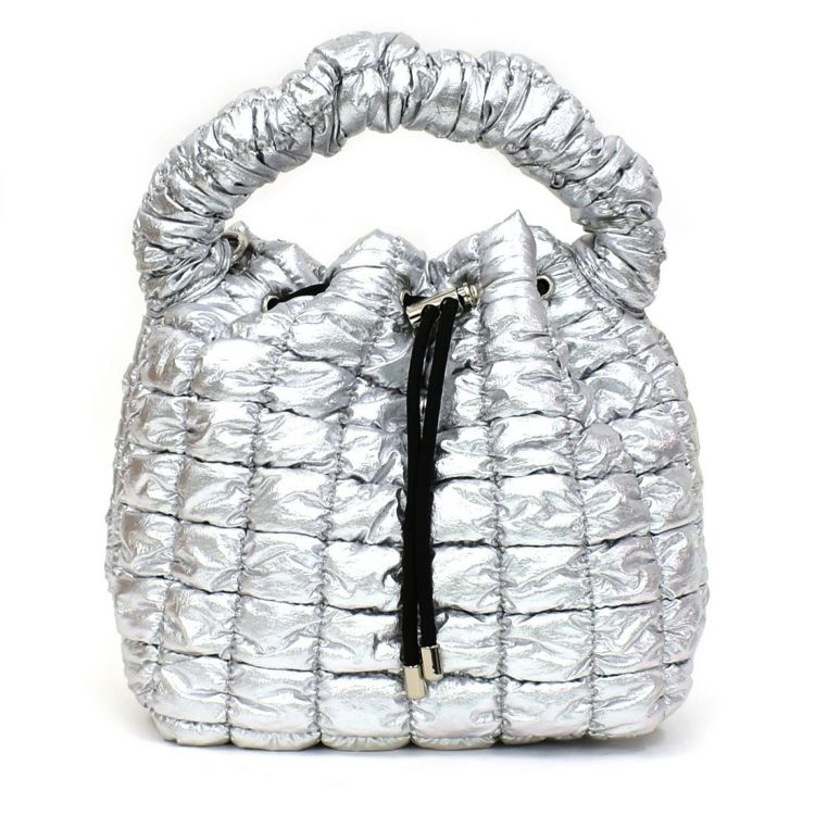 ギャザーハンドルとキルティングが可愛いミニバッグ。