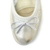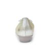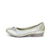 山羊革(ゴート)の下地にクラッキング箔加工をした、輝きのあるシルバー。凹凸感が表面に奥行きをもたせ、表情豊かな素材感に。とても若々しくオシャレな一足としておすすめ。