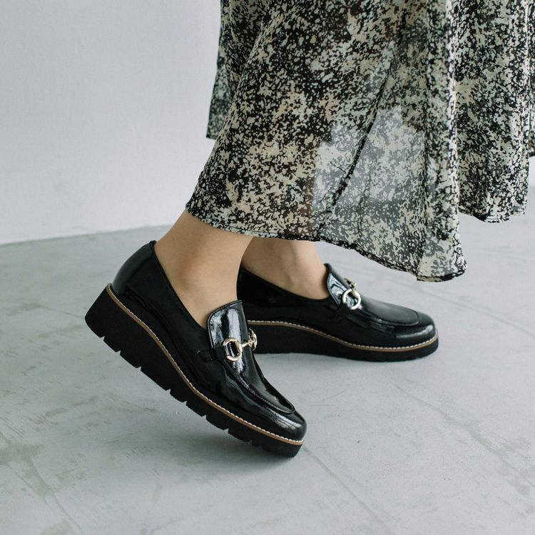 シンプルなデザインながらも高級感溢れるゴールドのビットがアクセントポイントになっています。スカートやワンピースはもちろん、デニムなどのカジュアルスタイルとも相性バツグン。 軽量で歩きやすく、雨の日でも履けるのでオールシーズン大活躍間違いなしの一足です。