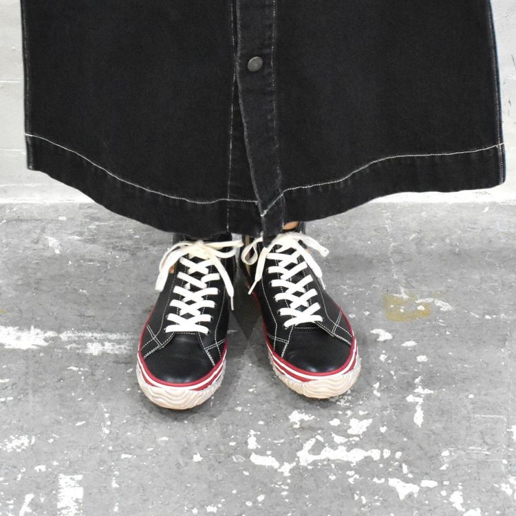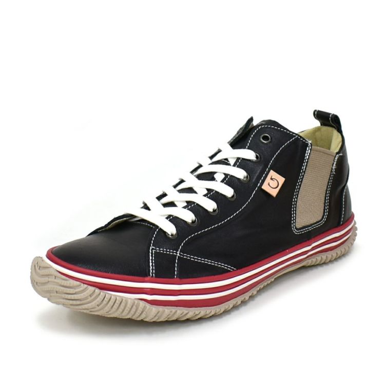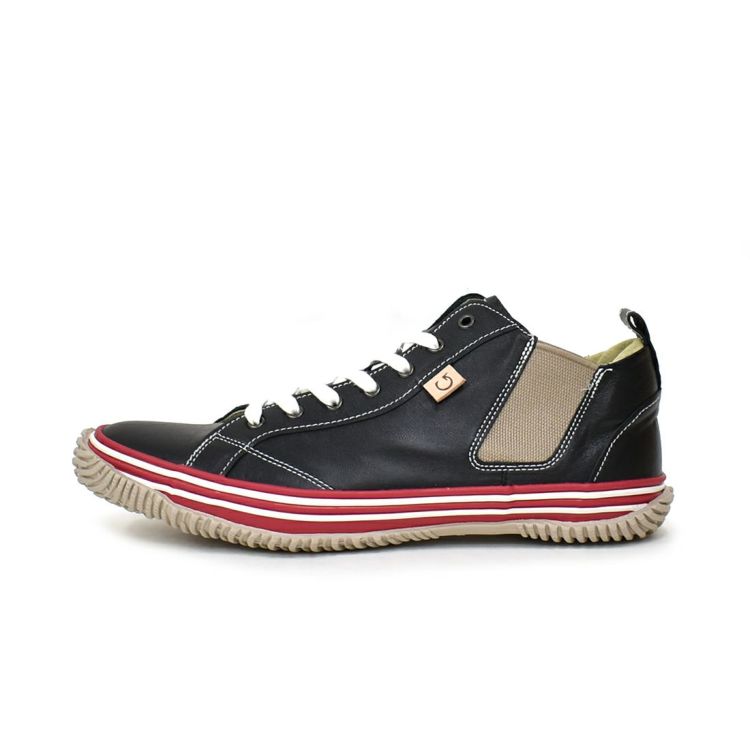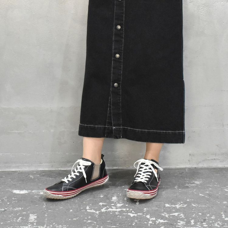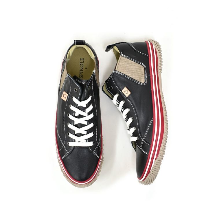 XS(22.5cm)-S(24.5cm) SPINGLE 国産サイドゴアレザースニーカー BLACK/RED