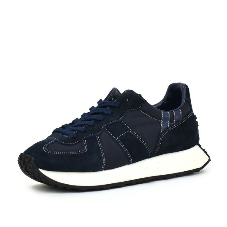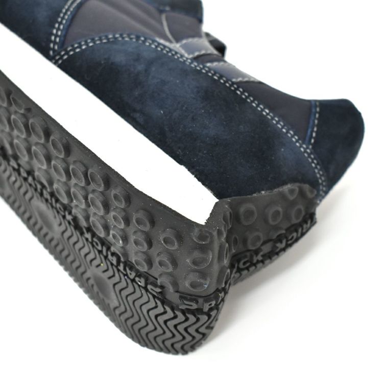 アッパーのナイロン、ベロアともにネイビーで統一。ですが素材のコントラストがあるので、奥行きのあるデザインとなりました。