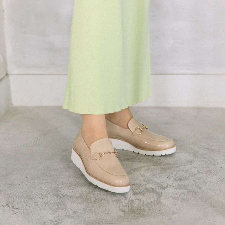 シンプルなデザインながらも高級感溢れるゴールドのビットがアクセントポイントになっています。スカートやワンピースはもちろん、デニムなどのカジュアルスタイルとも相性バツグン。 軽量で歩きやすく、雨の日でも履けるのでオールシーズン大活躍間違いなしの一足です。