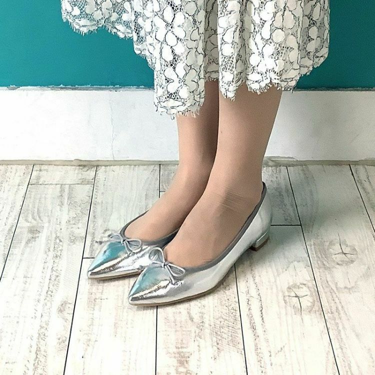 フラットながら、Vカット ローヒールが華奢で女性らしい足元を演出。ヒールがなくてもきれい見えするので、履き心地に無理なくおしゃれが楽しめます。華奢なトゥシルエットや、リボン飾りがフェミニン!シーズンレスに活躍する即戦力パンプスです。
