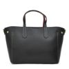 バイカラーの内側と白いステッチがアクセントになり、デザイン性をアップいたしました。サイドのスナップボタンを留めるとバッグを変形できるため、気分によって形を変えてお持ちいただけます。また付属のショルダー紐をつけることでショルダーバッグとしてもお持ちいただけます。