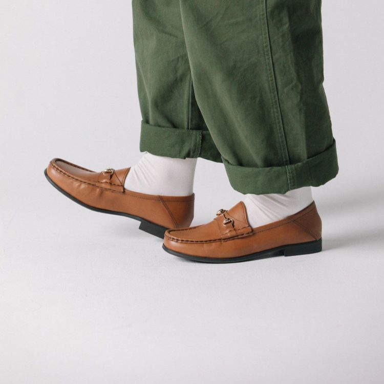 WASHオリジナルの人気ローファー。大人のカジュアルスタイルをセンス良く日本人デザイナーによる職人技のこだわりがつまったブランド「whoop-de-doo」とWASHとのコラボシリーズ。メンズドレスシューズが得意な「whoop'-de-doo'」ならではの味と雰囲気漂うデザインが楽しめる1足。ゴールドのビットが素敵なアクセントになっています。かかと部分に芯が入っていないので柔らかく、かかとを踏んで履いていただけます。人気のトレンドアイテムとして持っておくと便利な1足です。