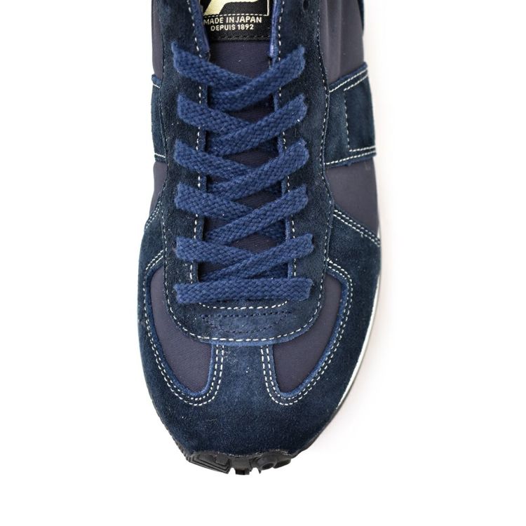 アッパーのナイロン、ベロアともにネイビーで統一。ですが素材のコントラストがあるので、奥行きのあるデザインとなりました。