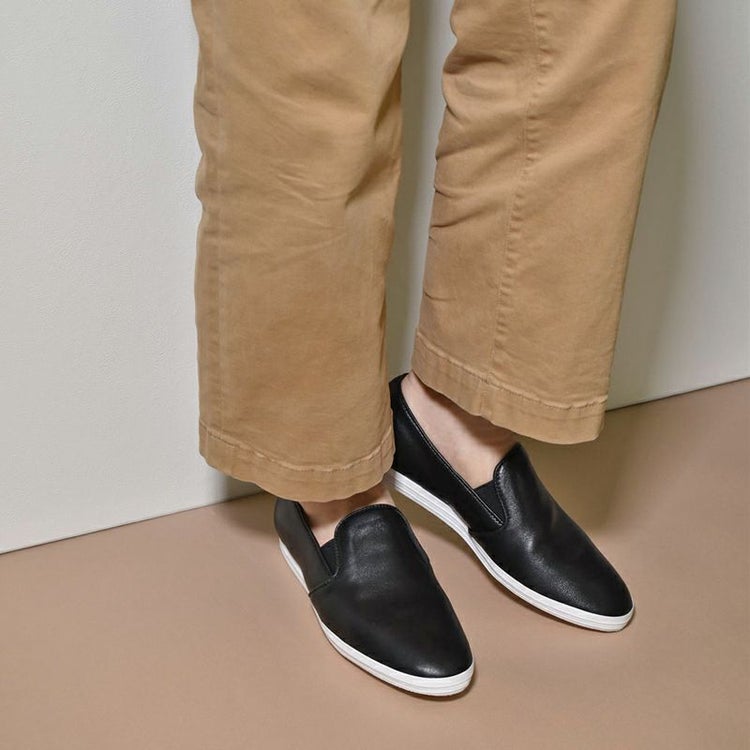 程よいリラックスさと抜け感のあるキレイめシルエットがポイント!スニーカーよりきちんと感があり、楽に履けるスリッポン。カジュアルになり過ぎず、こなれた大人を演出してくれる1足。きれいめのカジュアルコーデにもマッチします。ロングセラーになっている人気のアイテムの木型をアレンジした新作で、シンプルで大人っぽい足元に仕上がります。快適な履き心地で歩きやすさも◎。