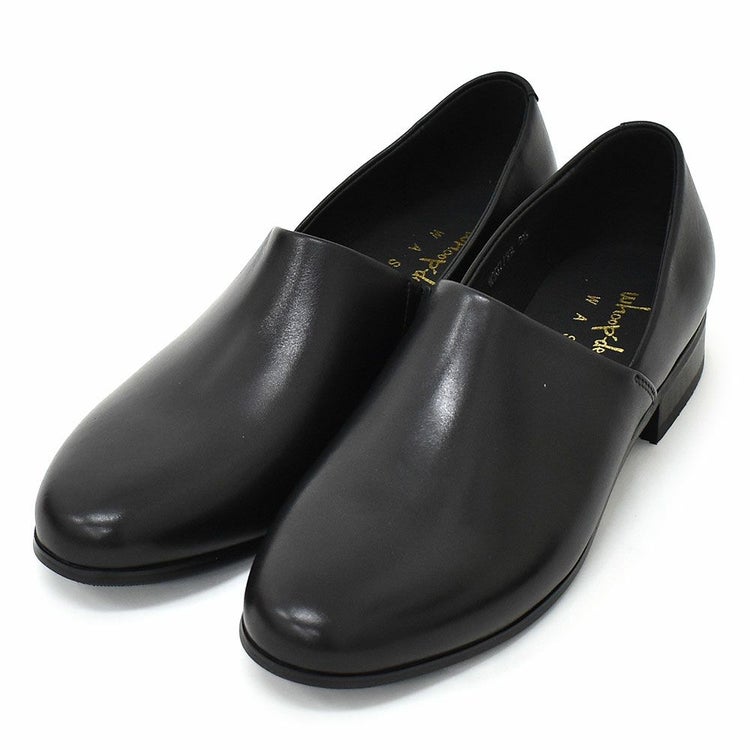 日本人デザイナーによる職人技のこだわりがつまったブランド「whoop'-de-doo'」とWASHとのコラボシリーズ。メンズドレスシューズが得意な「whoop'-de-doo'」ならではの味と雰囲気漂うデザインが楽しめる1足。シンプルで洗練されたデザインは、コーディネートを選ばず活躍してくれます。内側にゴムが入っているので着脱もスムーズ。ストレスを感じさせない履き心地の良さもポイントです。