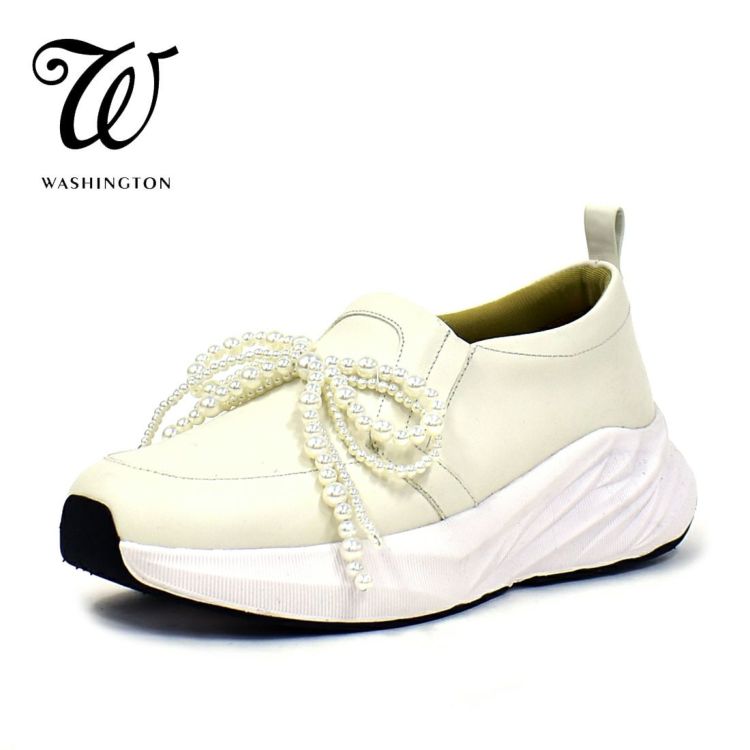 フェミニンなパールリボンがポイントの厚底スニーカー。