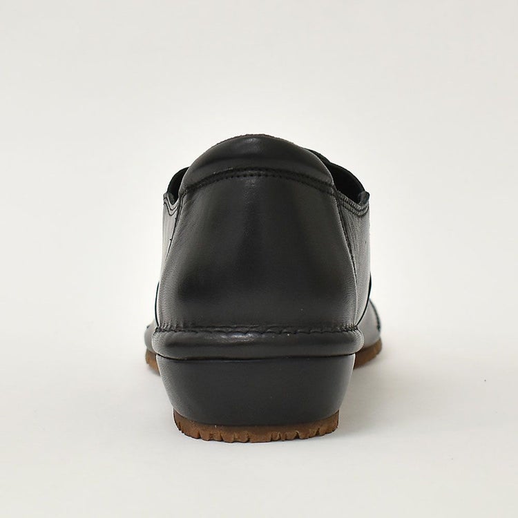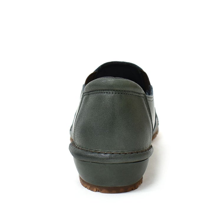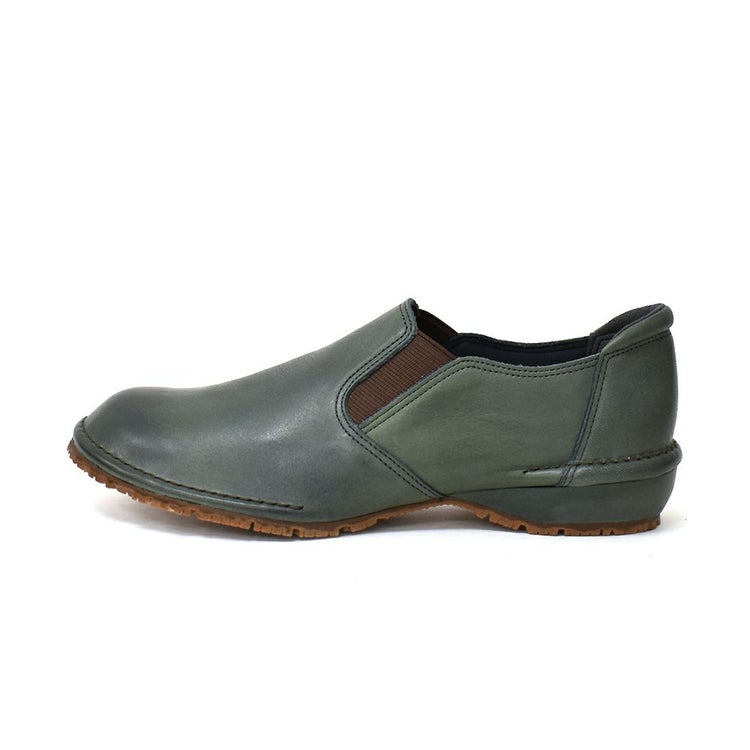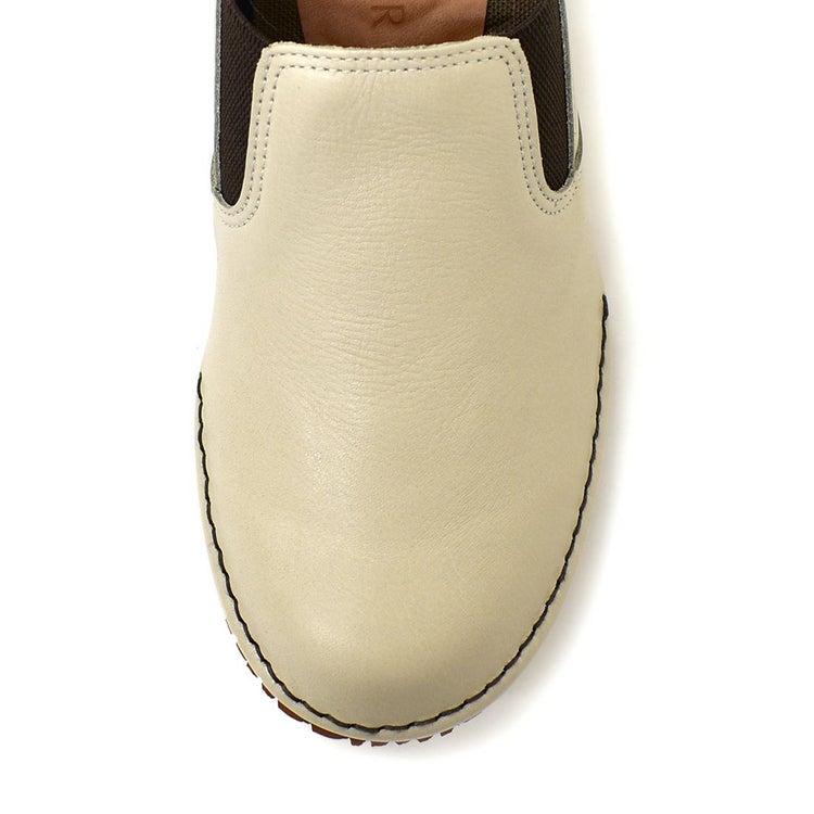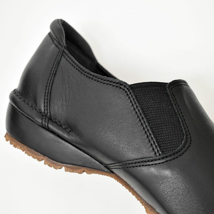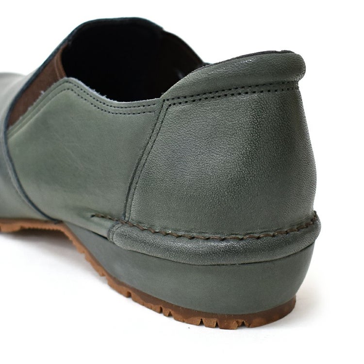 ゆったりめでサッと履ける!晴雨兼用のレザースリッポン。内側がウレタンメッシュ加工なので、足あたりもソフト。アッパーにはオイルヌメ革を使用しているのでくったりとした柔軟さを持ち、履くほどにしっくりと馴染んできます。使い込むほど風合いが増し、よりアンティーク感も楽しめます。靴の中のムレやにおいを解消し、湿気もためないのでいつでも快適。アウトソールには防滑・屈曲性・耐久性に優れたアブソーブストッパーを採用しているので雨の日、雪の日も安心です。
