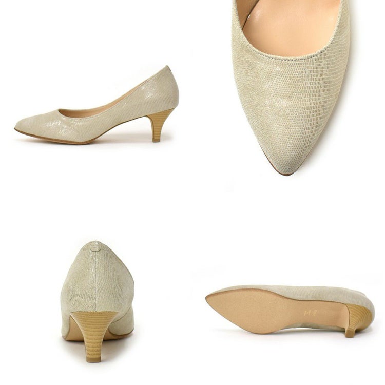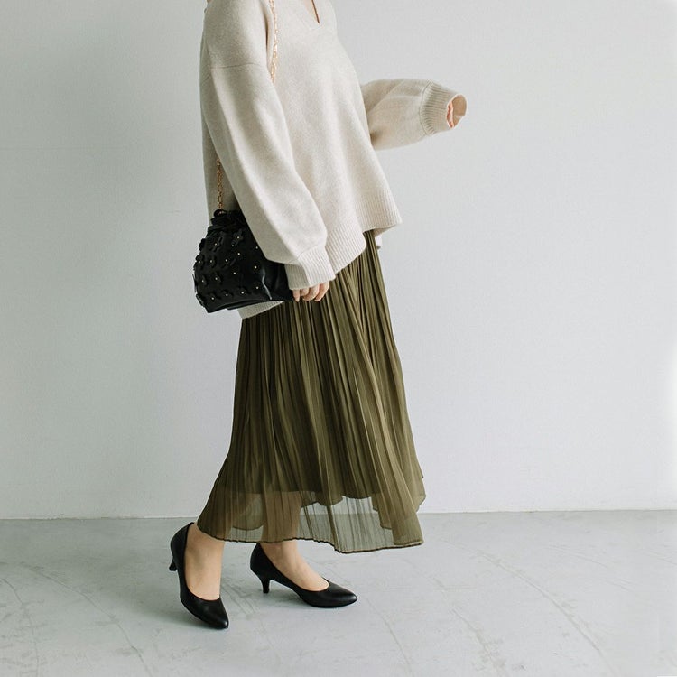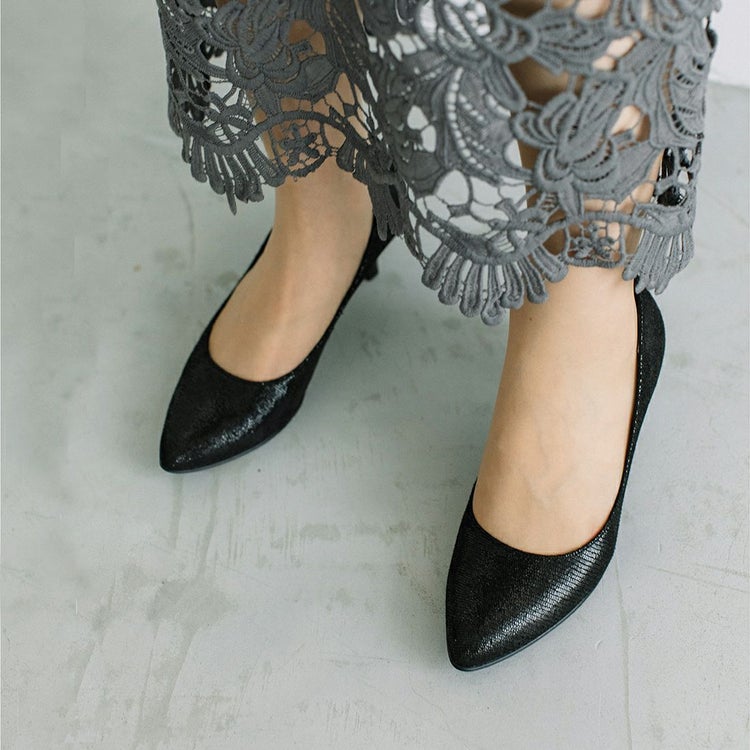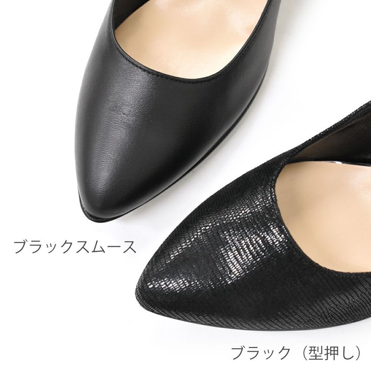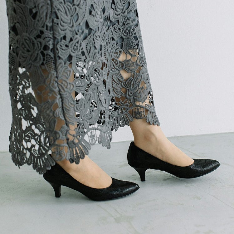 パンツスタイルとも好相性で、足元を大人っぽくエレガントに仕上げてくれる1足。プリント加工を施したレザーは控えめな光沢感があり、足元をさりげなく華やかに見せてくれます。履きやすさにもこだわったミドルヒールで、通勤時など長く歩く日にもおすすめです。トレンドに左右されず長く愛用できる1足。