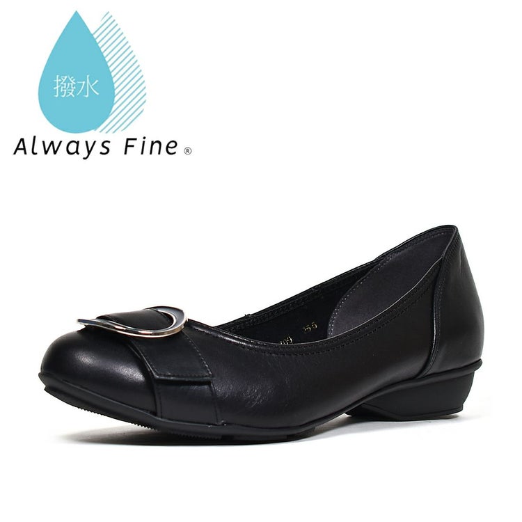雨の日でも気兼ねなく履ける撥水加工レザーを使用した晴雨兼用パンプスです。長く履いていても疲れにくい機能が満載。
