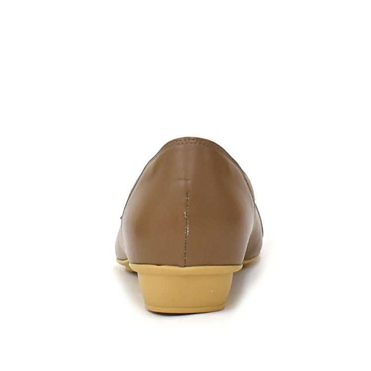 中敷のクッションに厚みがあり、踵とつま先にはしっかり芯が入っています。甲の内側に隠しゴムが入っているので着脱時や歩行時にゴムが良い役目を果たします。素材もソフトで足当たりが安心。