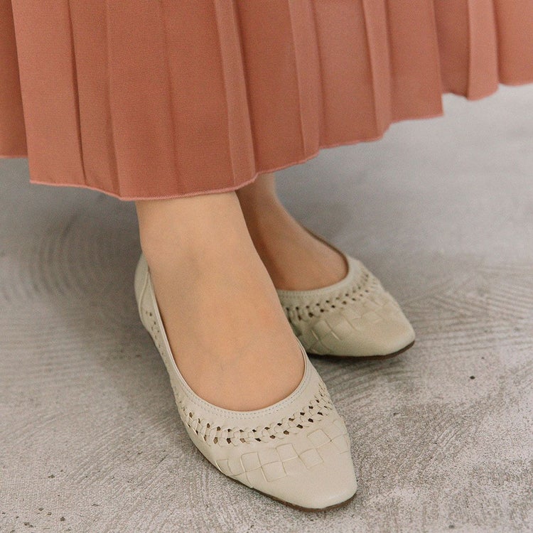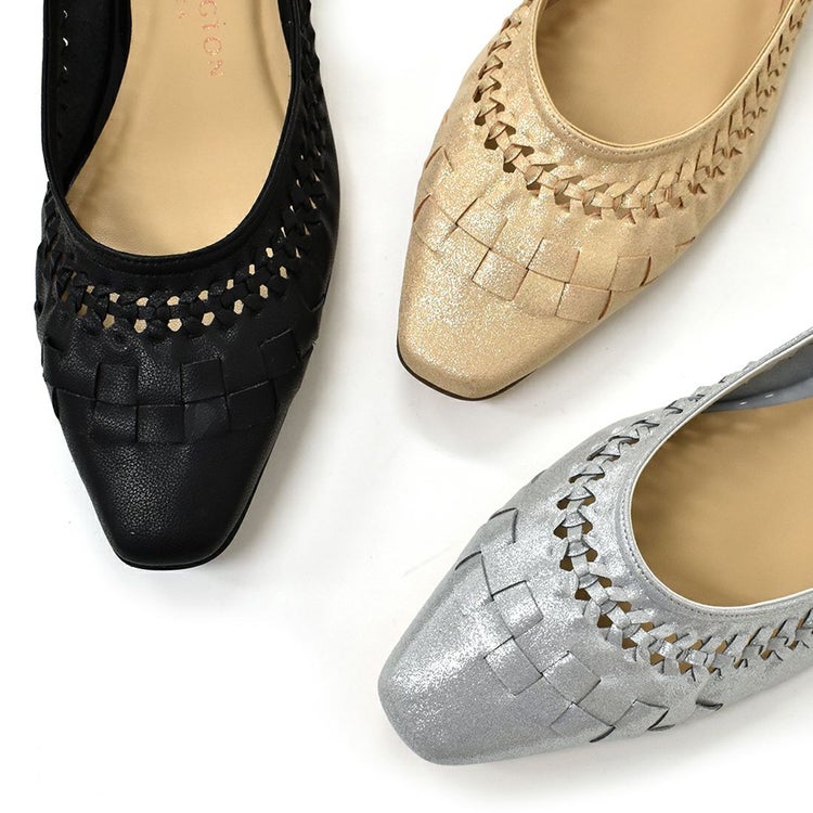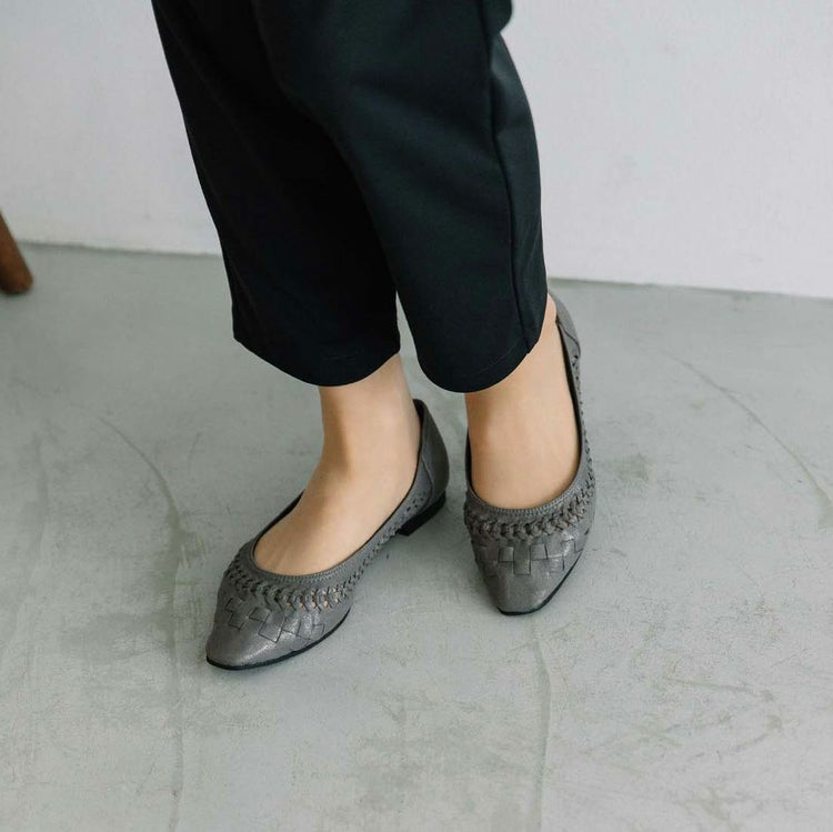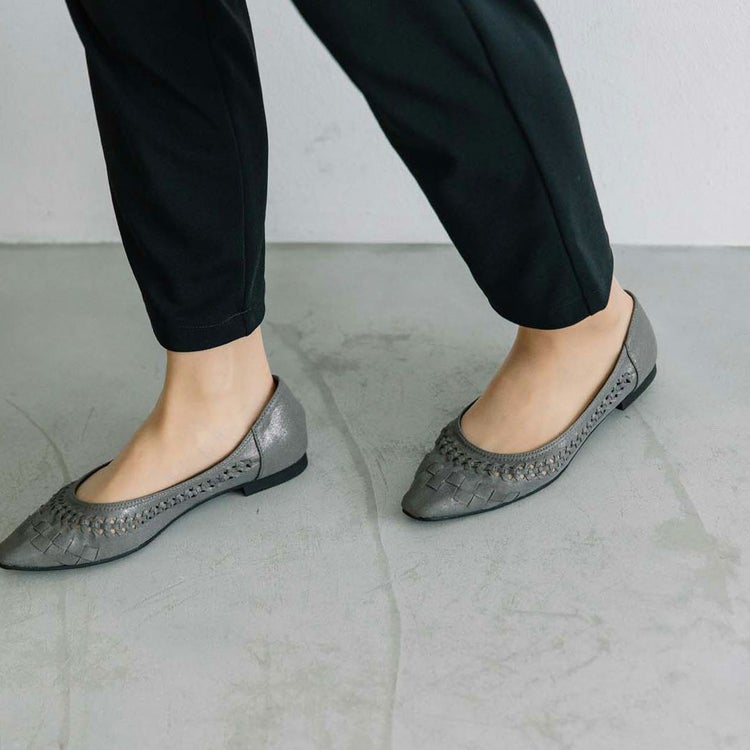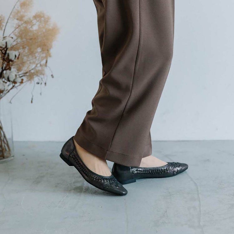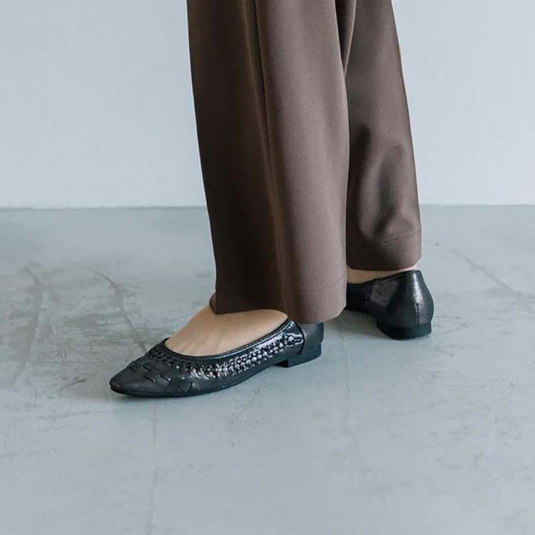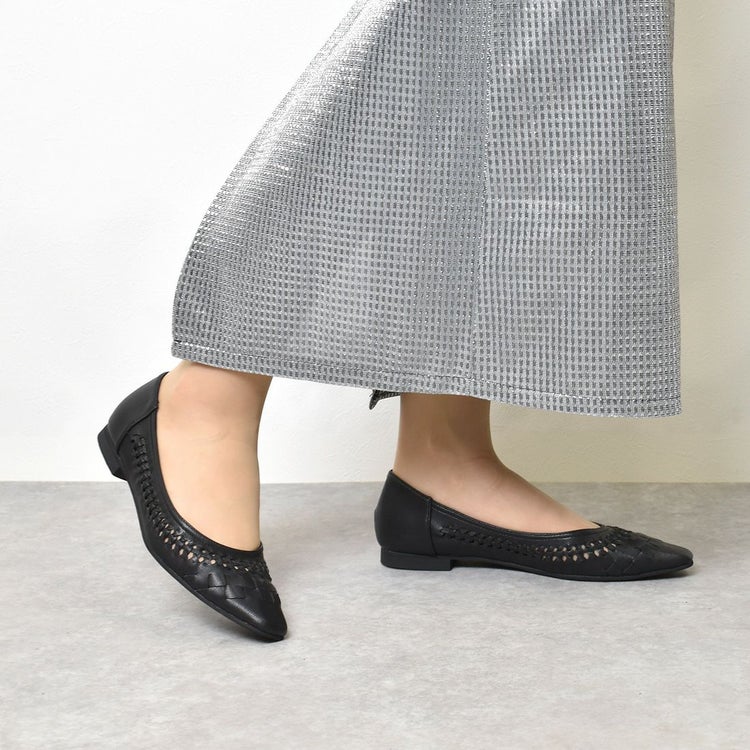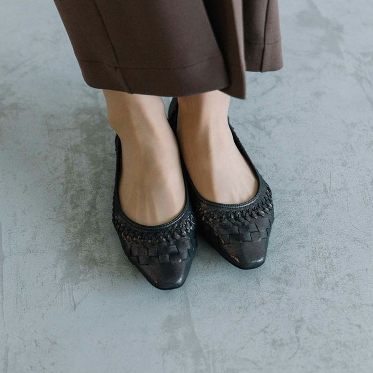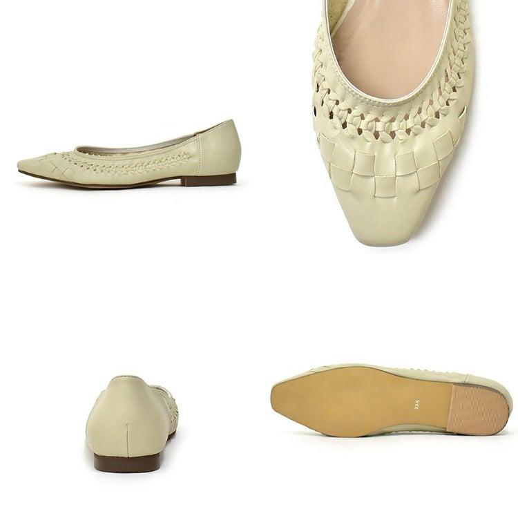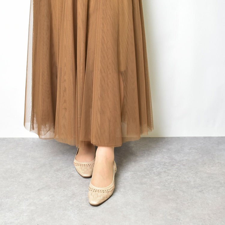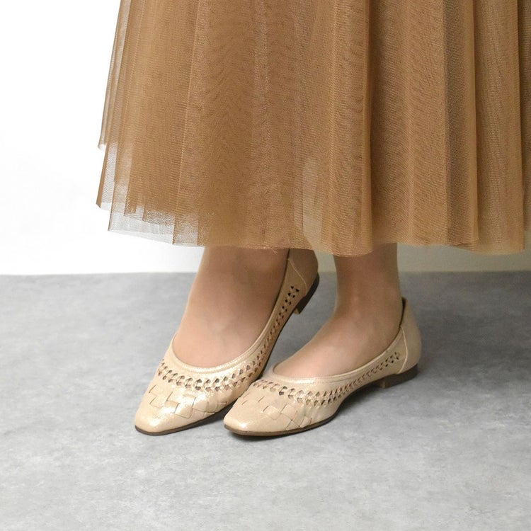 足元を爽やかでヌーディーに演出してくれる1足。細めのスクエアトゥで甘すぎず、大人の雰囲気に。インソールはクッション性があるので長く履いても疲れにくく、足へのフィット感も◎。フェミニンスタイルだけでなく様々なコーデに取り入れやすい、着回しのきくアイテムです。