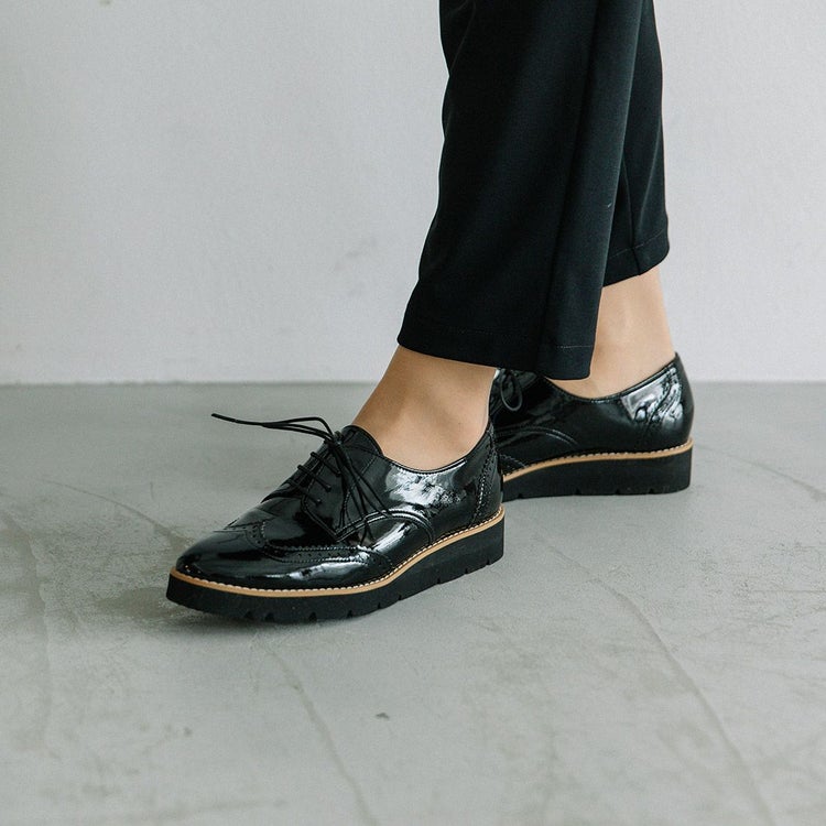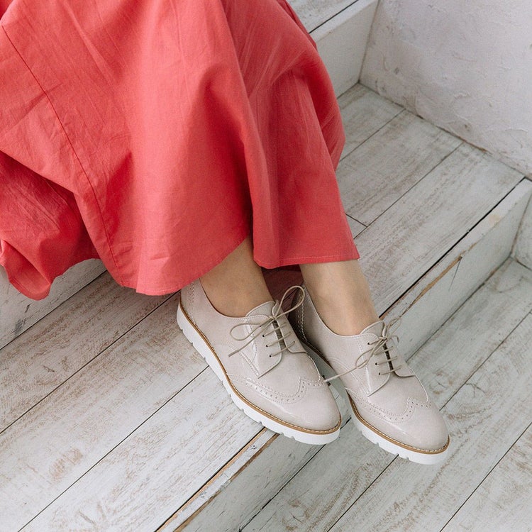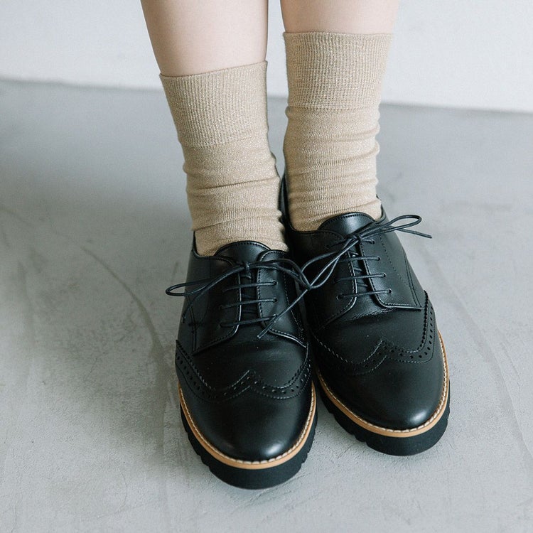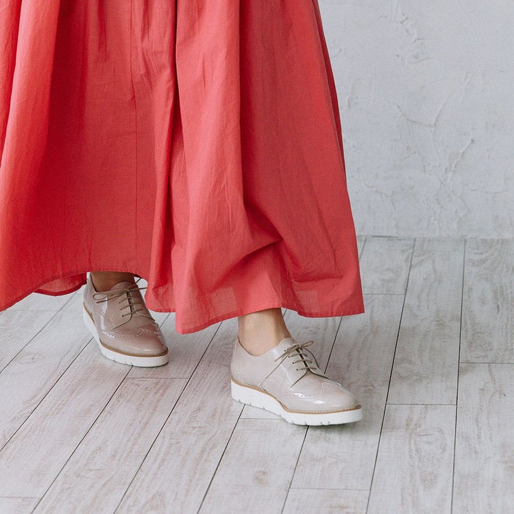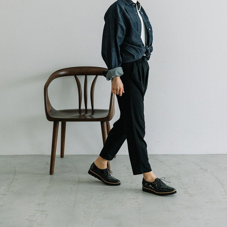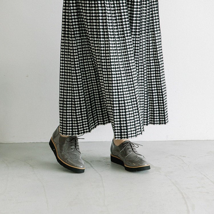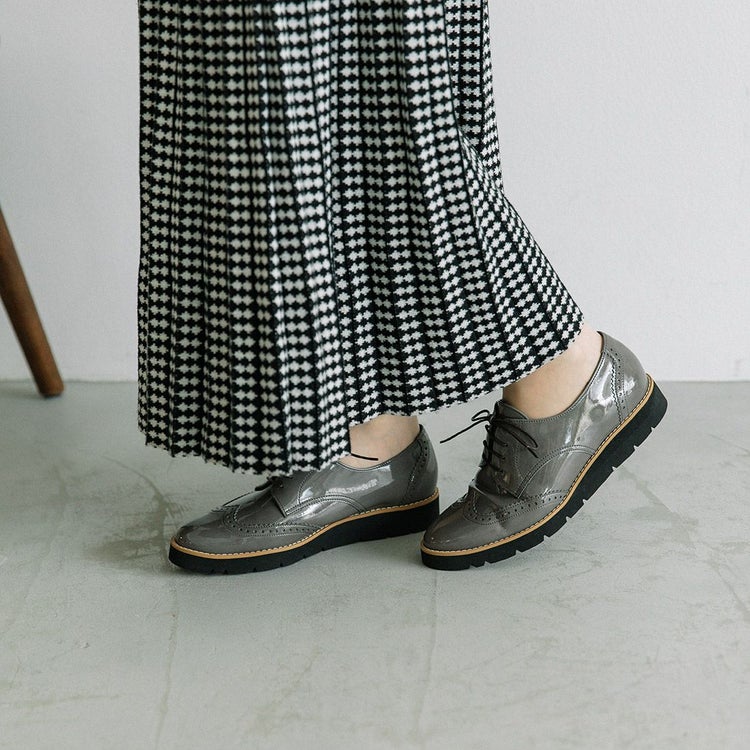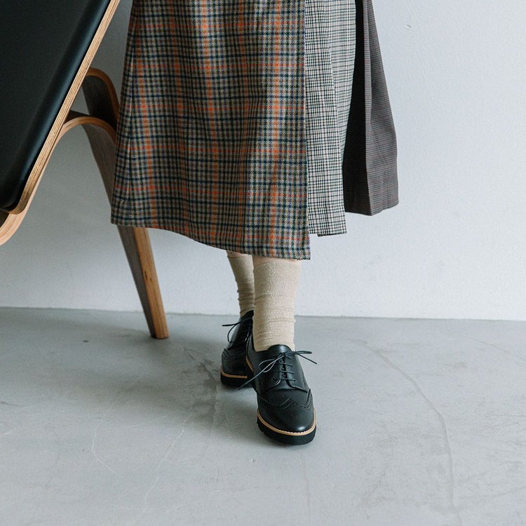 程よいボリュームの厚底はスタイルアップにも◎。底面に防水シート、踵縫い割りに防水テープを施しているので雨の日でも安心。パンツスタイルはもちろん、きれいめスタイルのスカートやワンピースにもしっくりくる1足です。