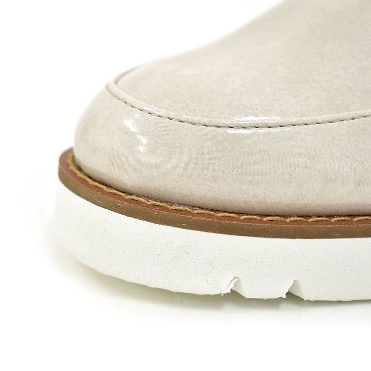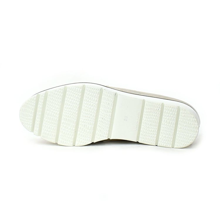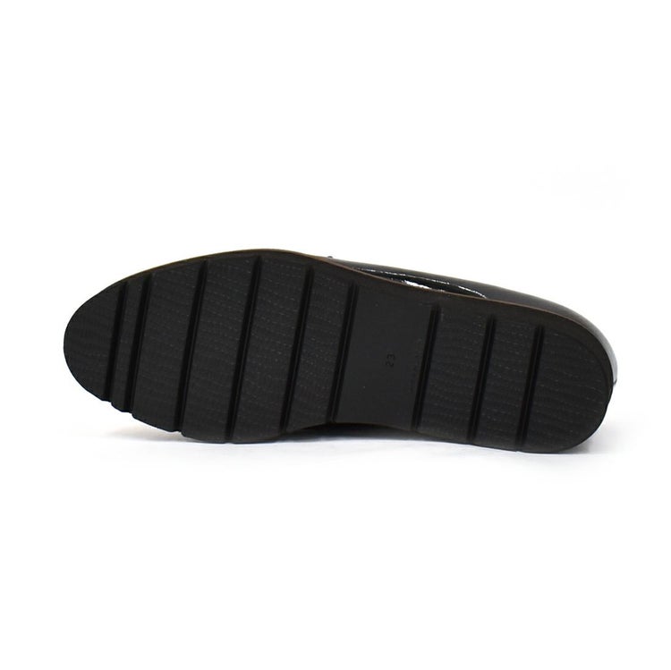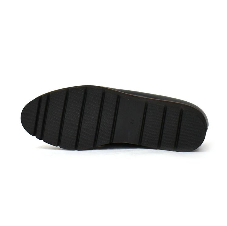 ベーシックながらマニッシュな表情で、幅広いコーデに合わせやすい1足。ウェッジソールと3Eの幅広で疲れにくく快適な履き心地。雨の日でも気兼ねなくおしゃれを楽しめます。