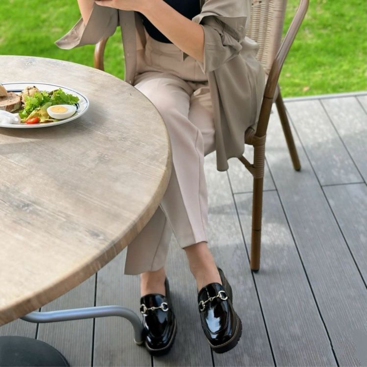 シンプルなデザインながらも高級感溢れるゴールドのビットがアクセントポイントになっています。スカートやワンピースはもちろん、デニムなどのカジュアルスタイルとも相性バツグン。 軽量で歩きやすく、雨の日でも履けるのでオールシーズン大活躍間違いなしの一足です。