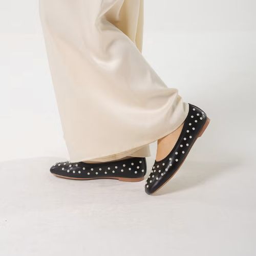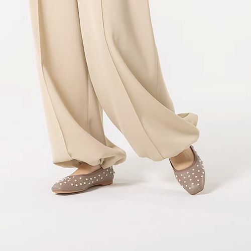 パール付きフラットシューズ。