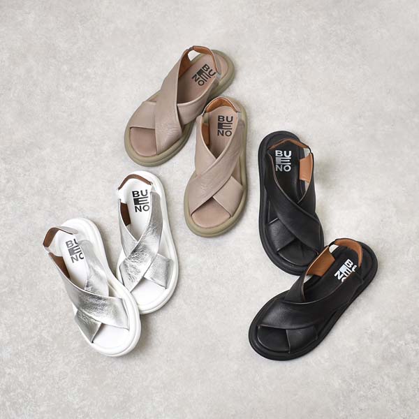 幅の広いクロスベルトのデザインは足をきれいに見せる効果があり、