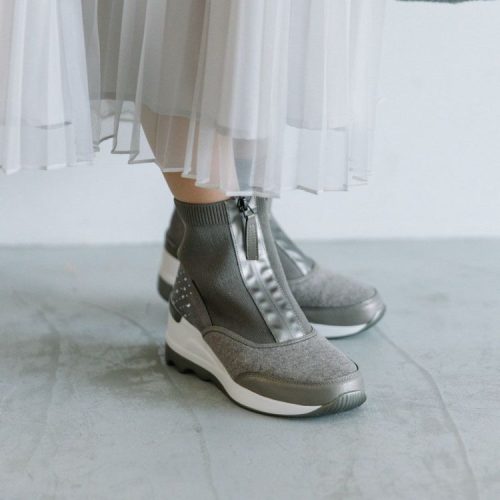 伸縮性のあるニット素材とスポーティーな厚底ソールを