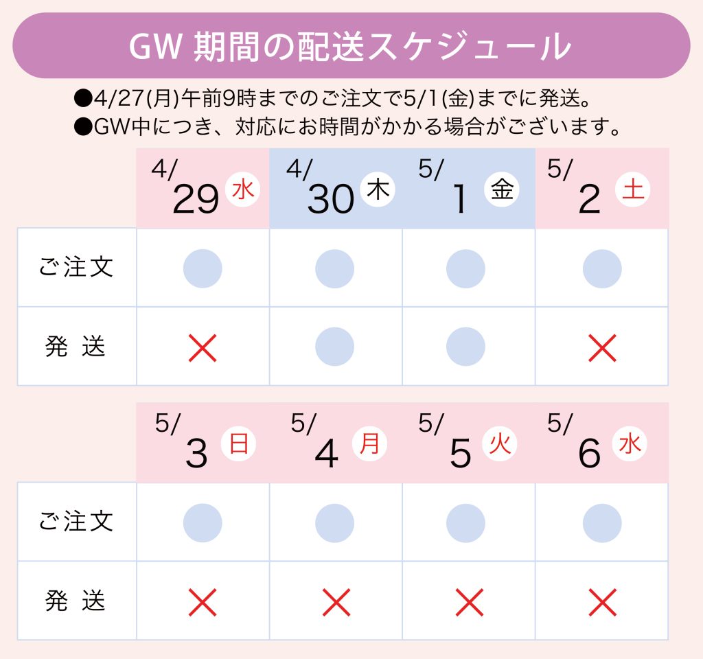 5月2日(土)~5月6日(水)までに到着希望がある場合は、お早めのご注文をお願い致します。