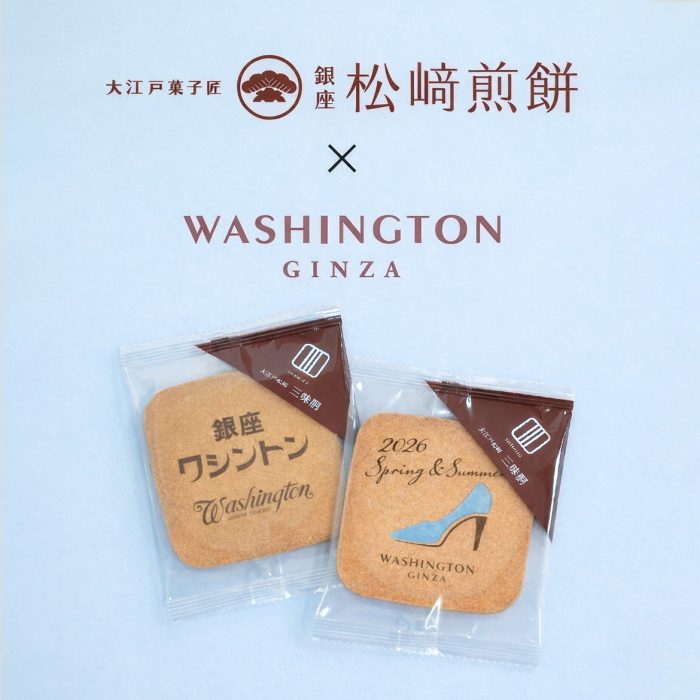 開催期間中、26SS商品をご予約いただいた方、または靴・バッグをご購入いただいた方、先着100名様にオリジナル瓦煎餅(松﨑煎餅・三味胴)をプレゼントいたします。