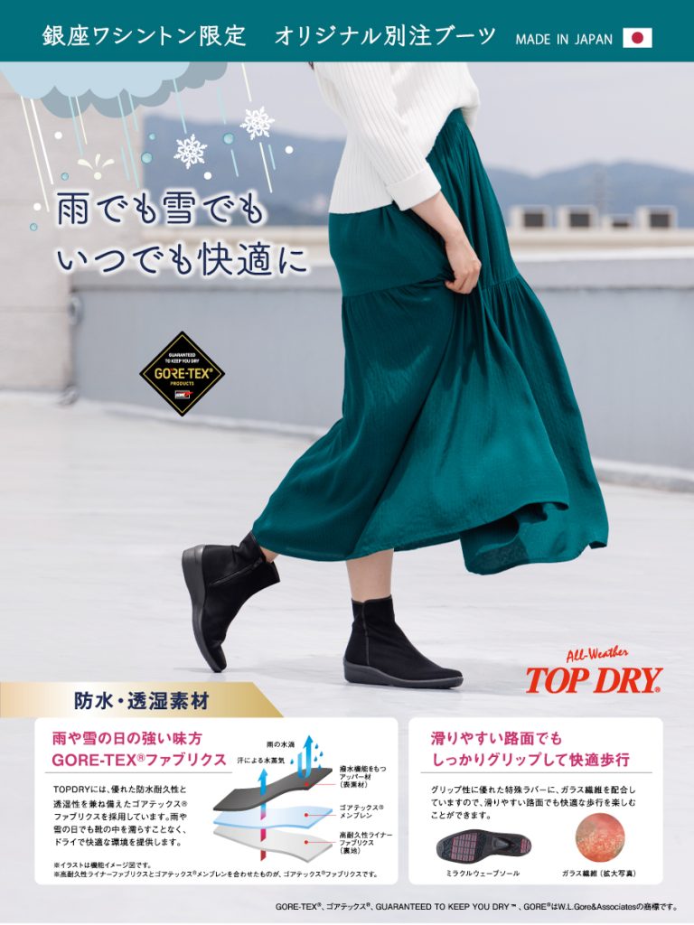 TOP DRYで人気のレインブーツをベースにした、「銀座ワシントン別注モデル」が登場。